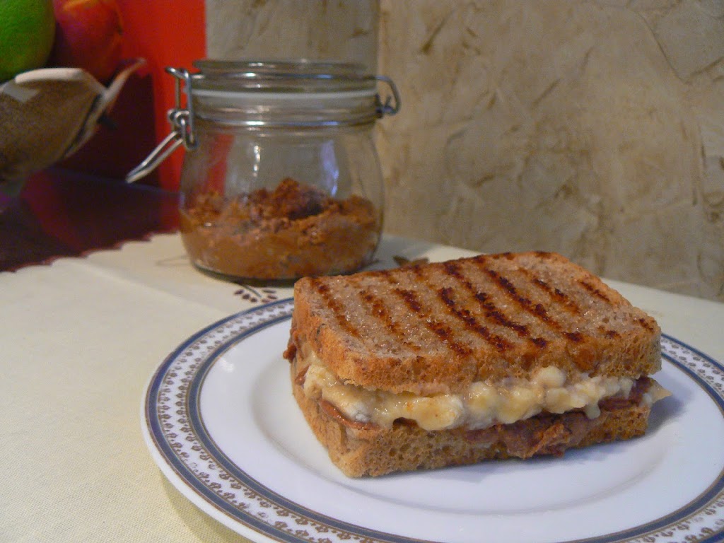 Nawet sam król nie mógł się oprzeć urokowi masła orzechowego, a tę grillowaną kanapkę pożerał w nadmiernych ilościach. Moja wersja jest nieco zdrowsza od oryginału, ponieważ pszenne pieczywo zastąpiłam razowym. Pomimo jej dużej kaloryczności, nie zapominajmy, że nie samymi kaloriami człowiek żyje (ale też przyjemnością na przykład). Wersja ze zdrowym pieczywem i domowym masłem orzechowym to na pewno dobry zastrzyk energii na cały nadchodzący dzień.