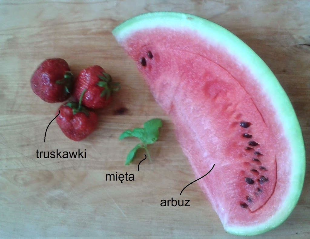 Truskawki umyć i przekroić na pół. Miąższ arbuza odkroić od skóry, oczyścić z pestek i pokroić na większe kawałki. Truskawki, arbuza i listki mięty wrzucić do blendera. Blendować przez 10-15 sekund. Przelać koktajl do szklanki i dopełnić kruszonym lodem.