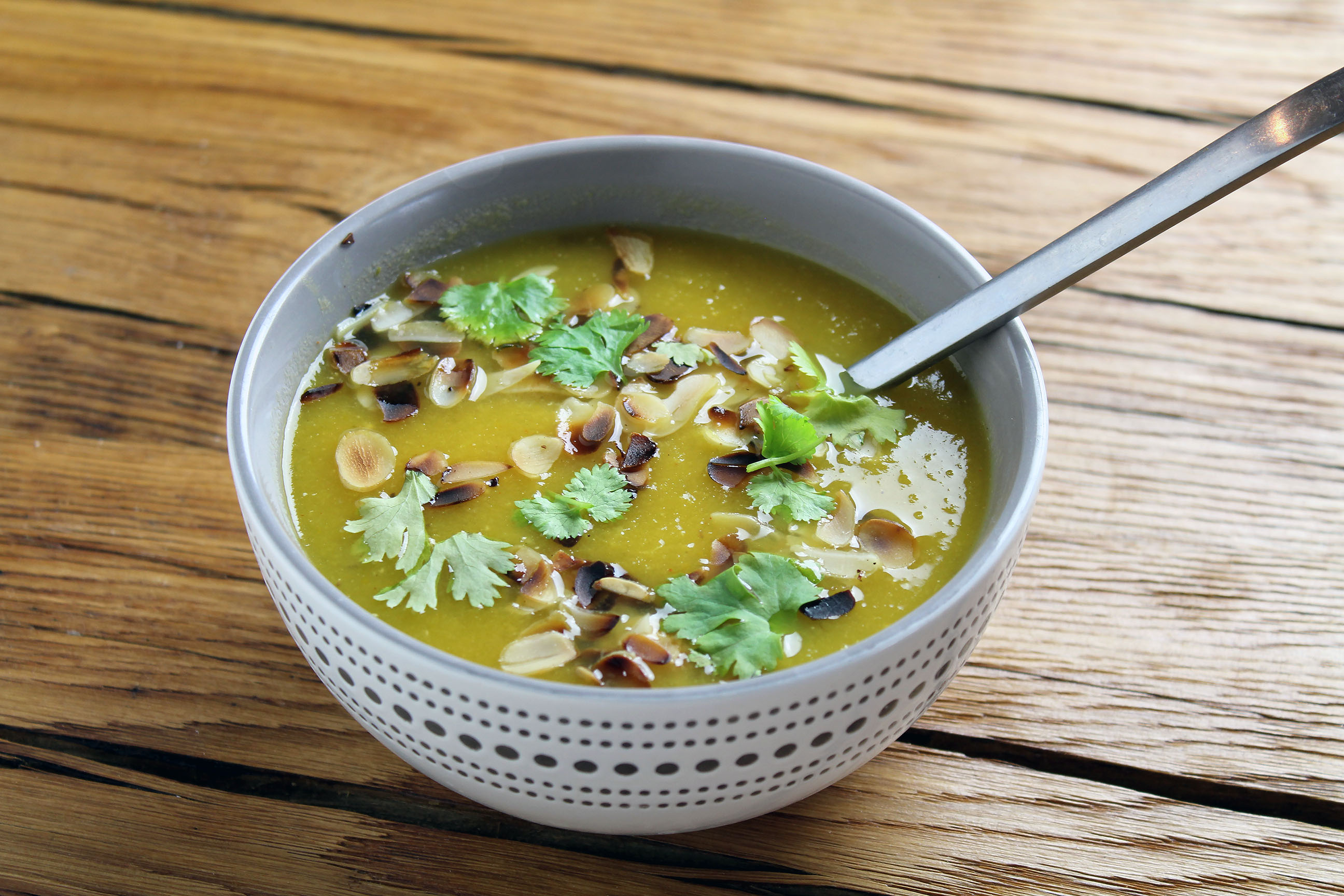 - do posypania: prażone migdały / kolendra / oliwa orzechowa
