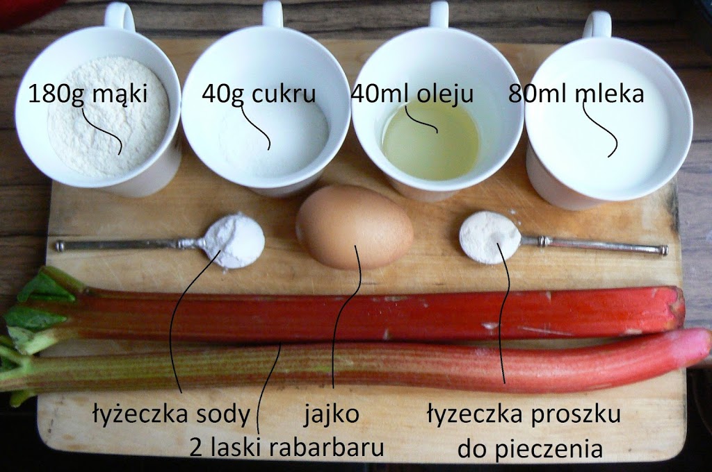 Po raz pierwszy miałam okazję używać rabarbaru w kuchni. Postanowiłam upiec coś, co uprzyjemni test z francuskiego, dlatego trafiło na muffiny. Nie mogę powiedzieć, że test był bardzo stresujący, chociaż bardzo bym chciała, bo to by mogło wyjaśnić fakt, że zapomniałam zrobić zdjęcie muffinów po wyjęciu w piekarnika. Umówmy się więc, że były tak pyszne, że nie zdążyły załapać się na sfotografowanie.
