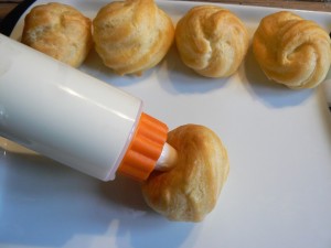 Urodziny zaowocowały pojawieniem się w mojej kuchni szprycy cukierniczej. Dostałam ją wraz z informacją „bo na blogu jest za mało słodkości”. Także nadrabiam zaległości i na pierwszy ogień poszły profitrolki, które były w mojej głowie już od dłuższego czasu.