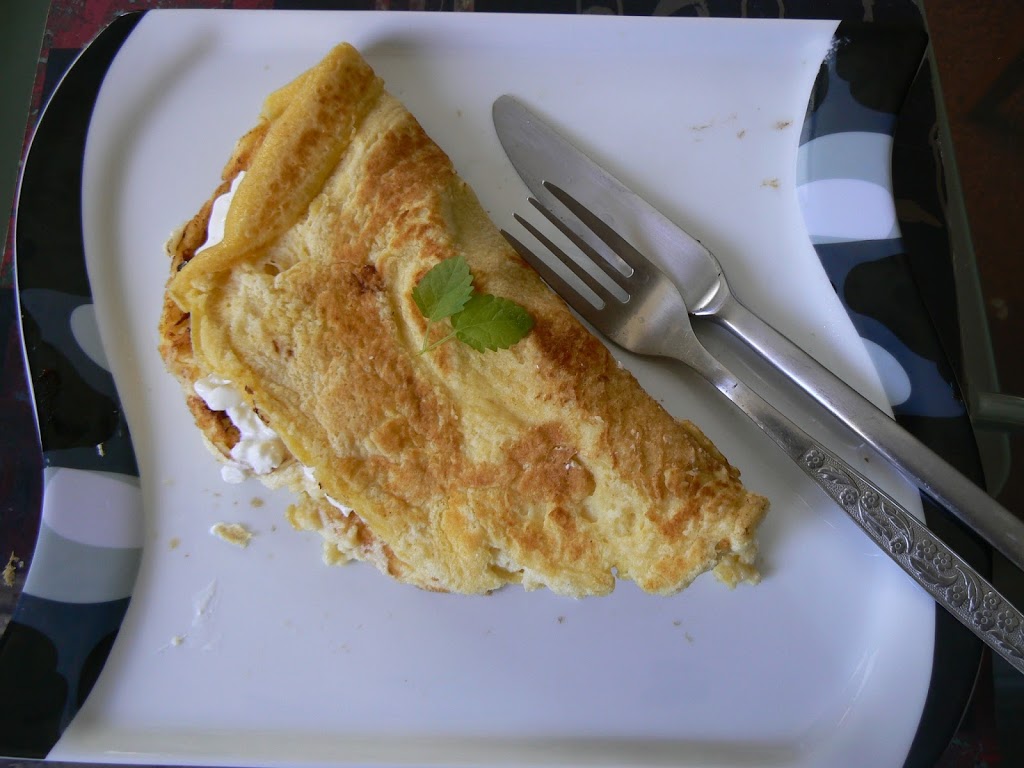 Swojego omleta zjadłam z powidłami śliwkowymi i serkiem wiejskim, ale można go podawać w konfiturami, czekoladą, masłem orzechowym, owocami, bitą śmietaną, i wszystkim innym, co przyjdzie Wam do głowy.