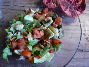 Pisząc, że jedzenie jest niesamowite, nie napiszę nic nowego. Ale jedzenie jest niesamowite nawet wtedy, kiedy trzeba się o nim uczyć i pisać później egzaminy, głównie z racji tego, że nieodłączną częścią takiego wysiłku intelektualnego, jest zasłużona integracja. Ciężko pracujący mózg zasługuje też na smakołyki, dlatego dzisiaj sałatka z grillowanym serem Halloumi, granatem, miętą i sosem miodowym.